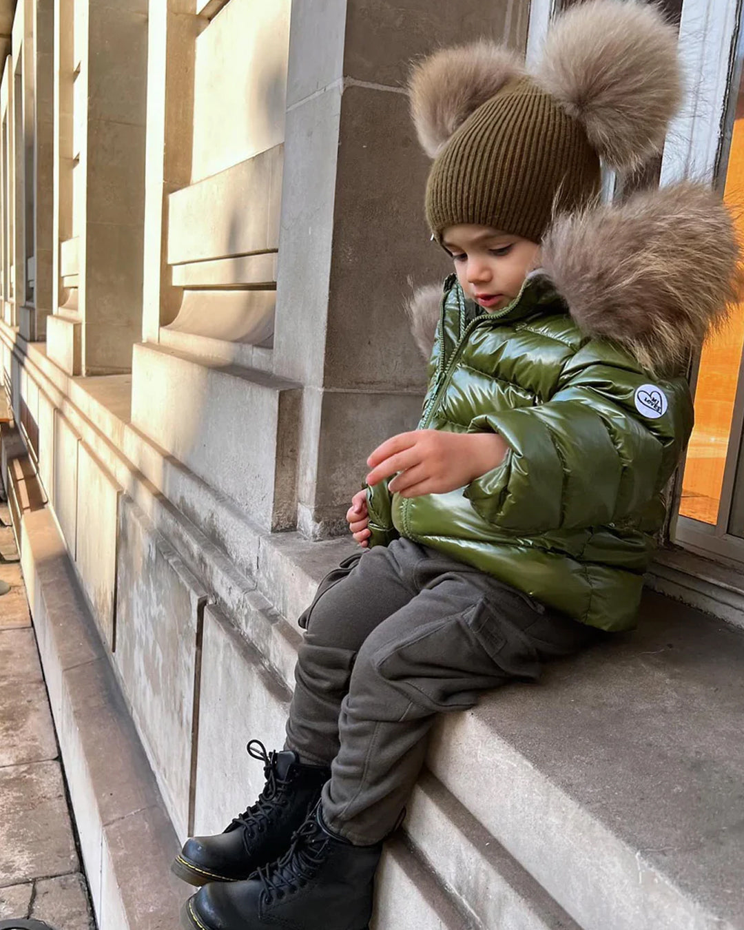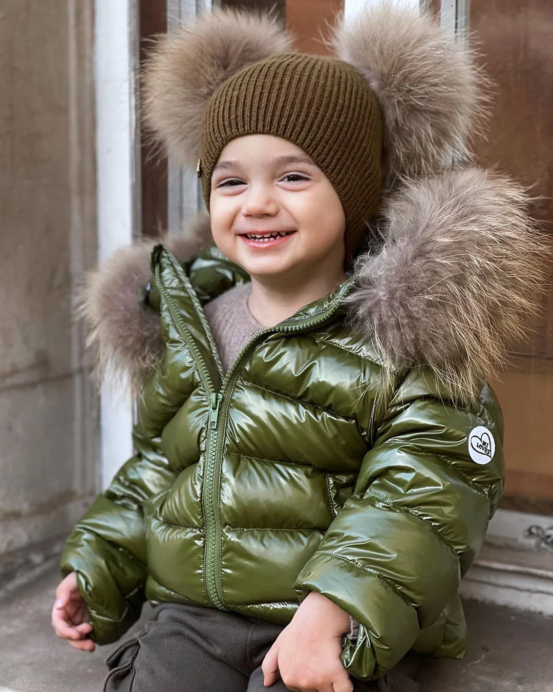 [Pre - Order] Mi Loves :: Luxurious Racoon Fur Trim Puff Jacket in Khaki Green
