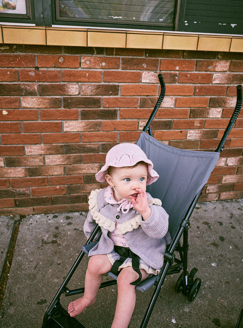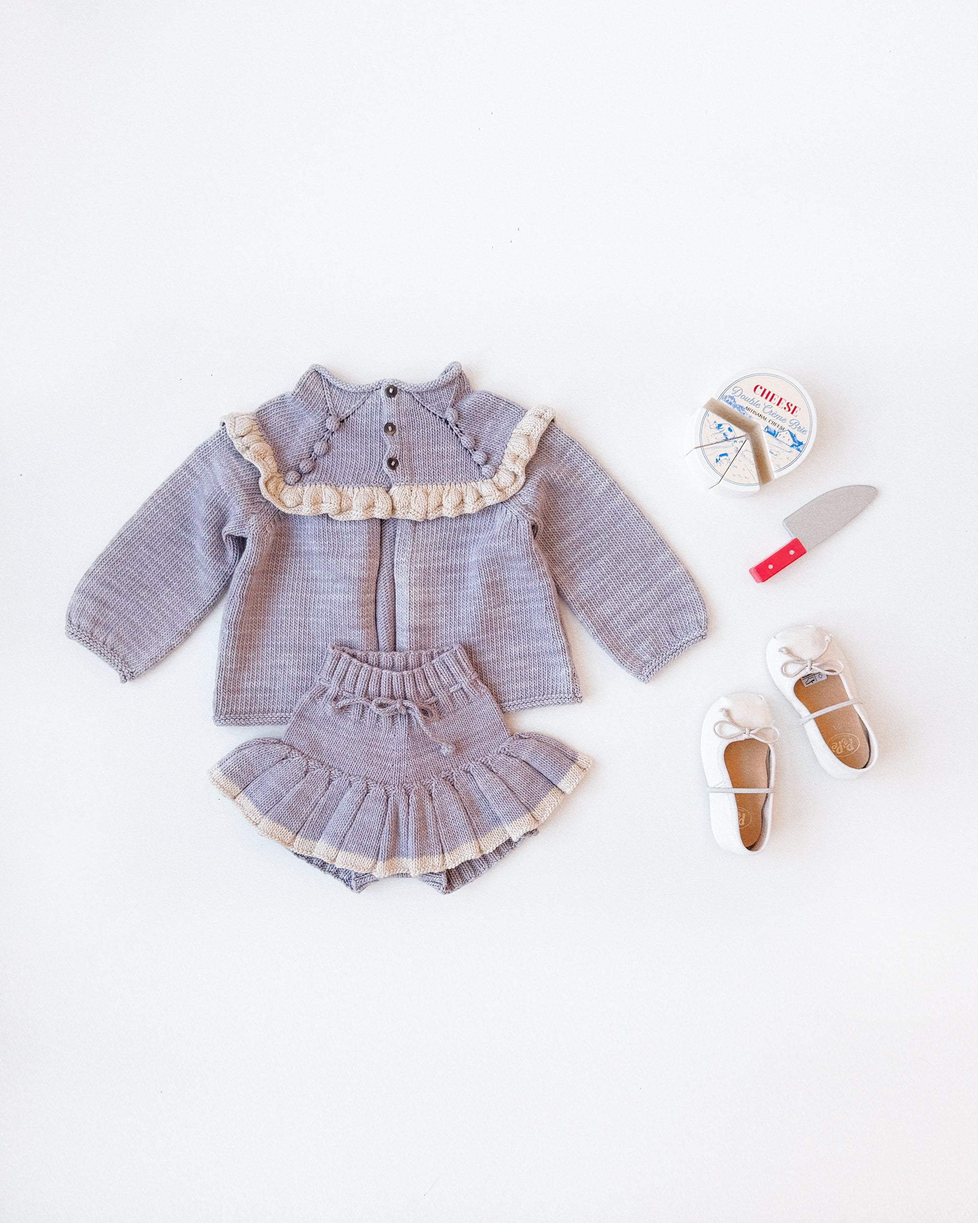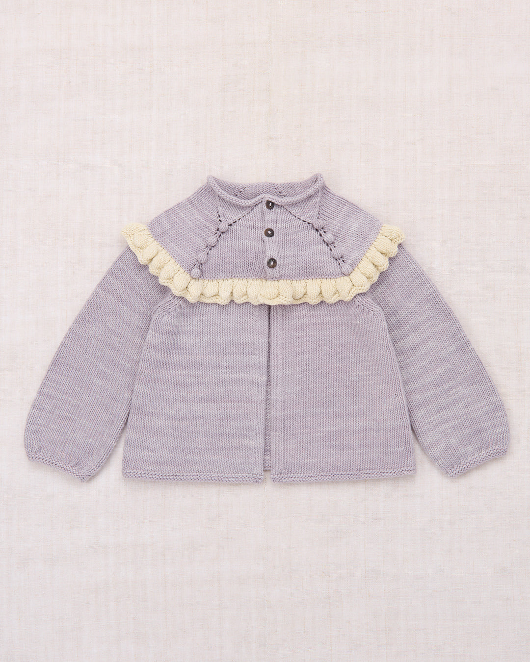 · Soft hand-knit cardigan in a gentle misty lavender tone