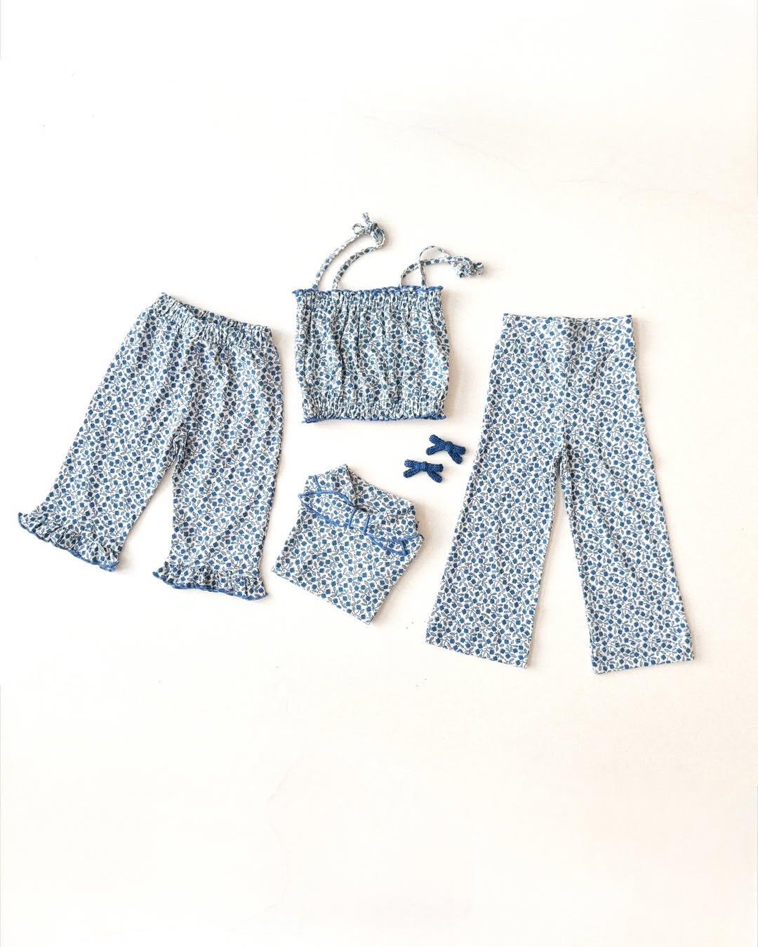 · Lightweight cotton pants with an allover blue floral print