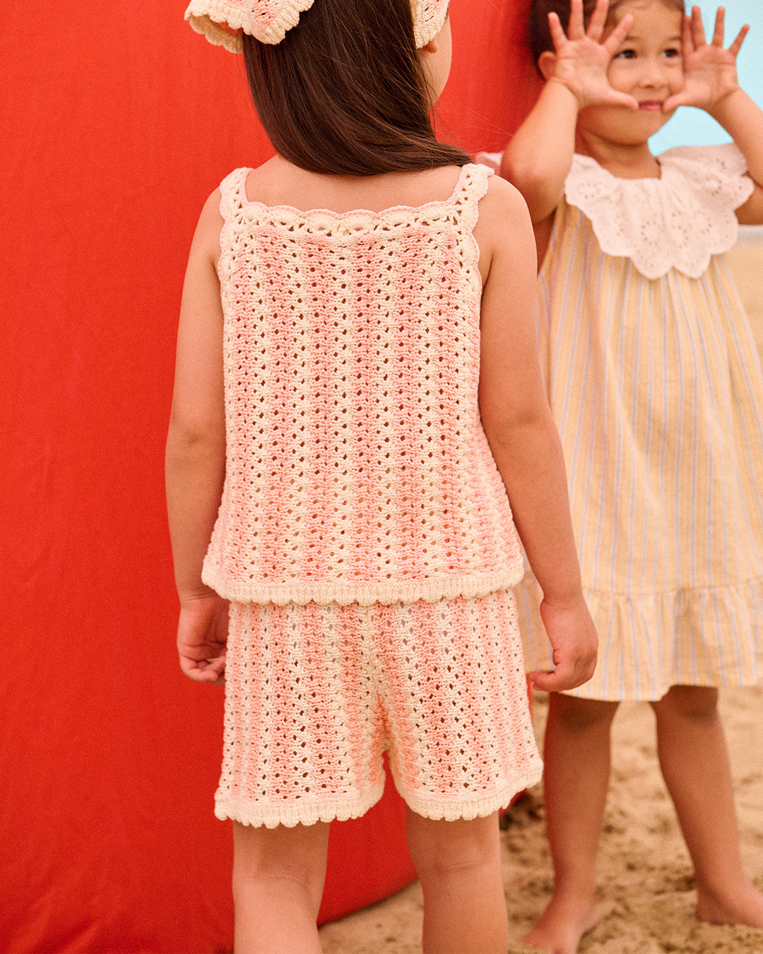 · Delicate openwork texture with scalloped hem