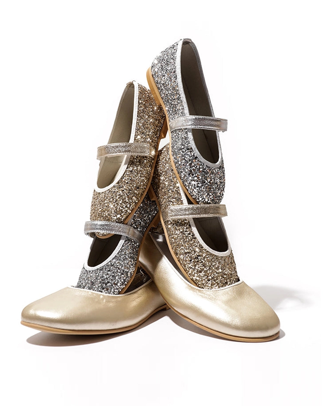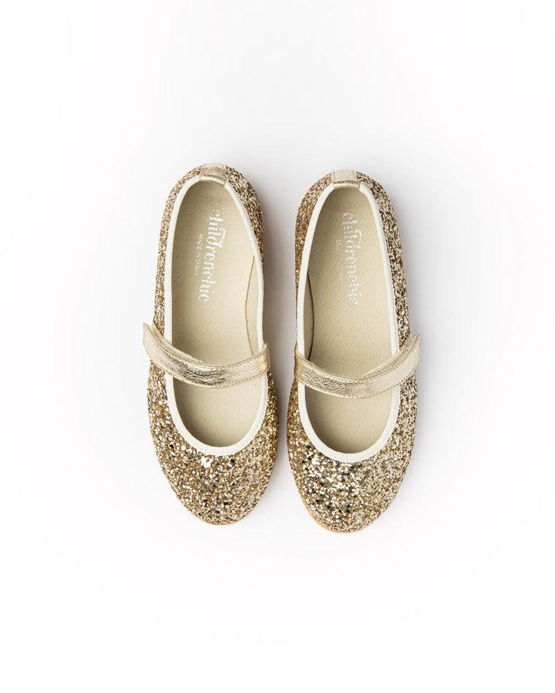 · Classic Mary Jane silhouette covered in sparkling gold glitter