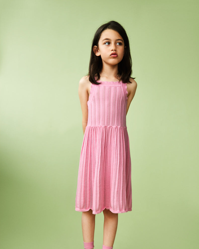 · Sleeveless summer dress with delicate pointelle knit texture