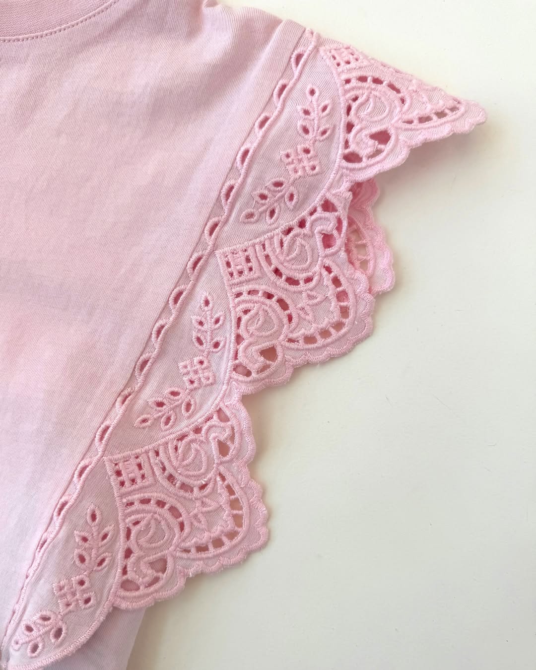 · Soft cotton tee in a gentle blush pink tone