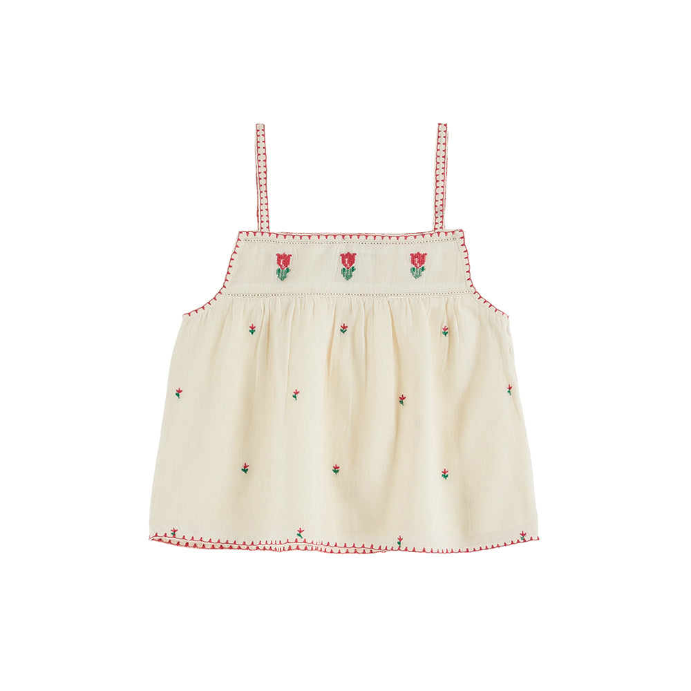 Emile Et Ida.:: Top Bretelles Brode Tulipes Ecru