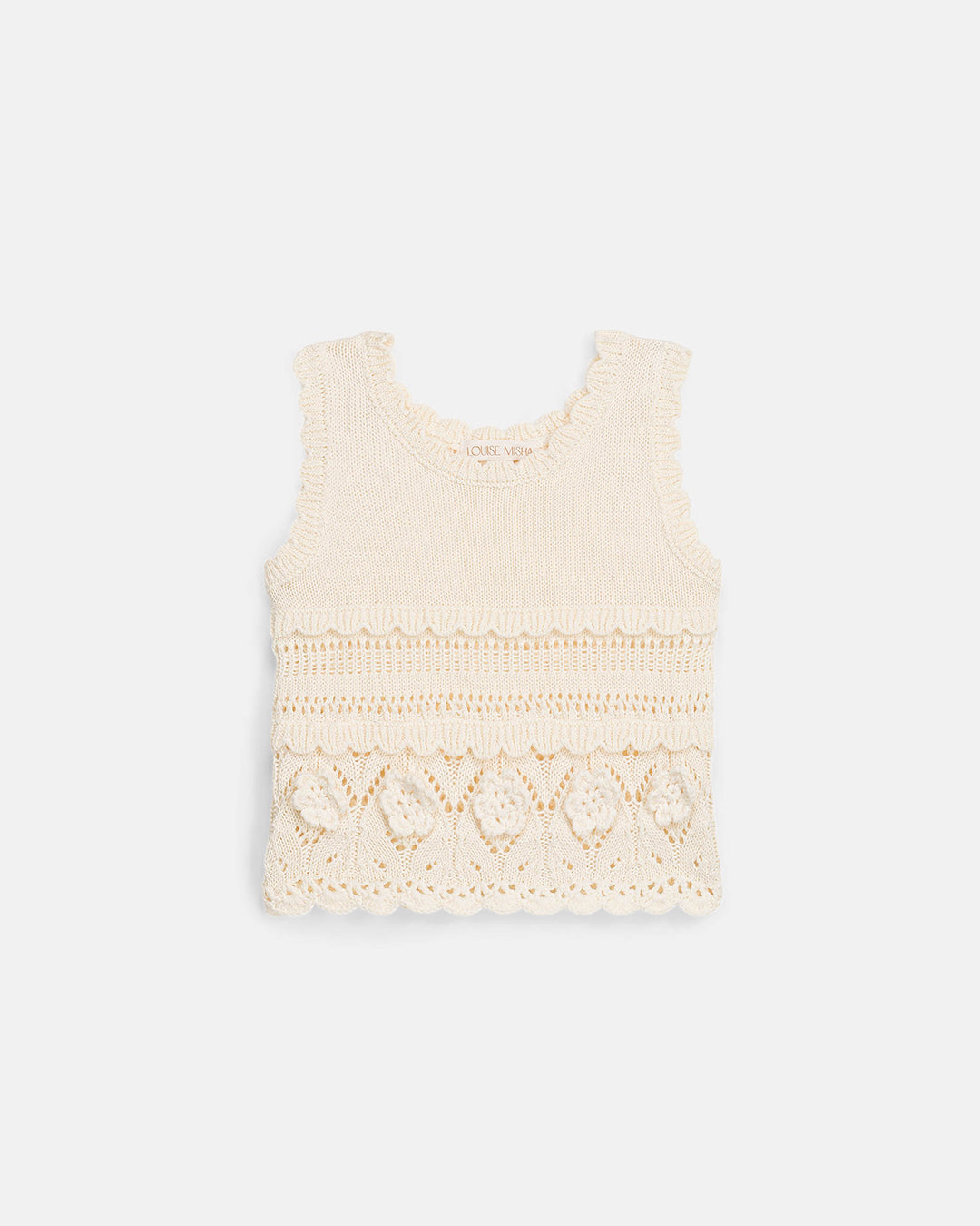 · Delicate openwork detailing and scalloped edges