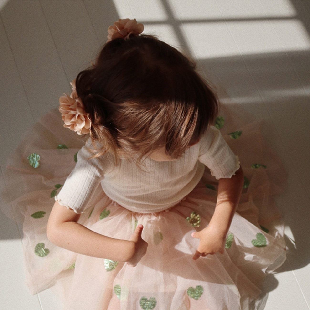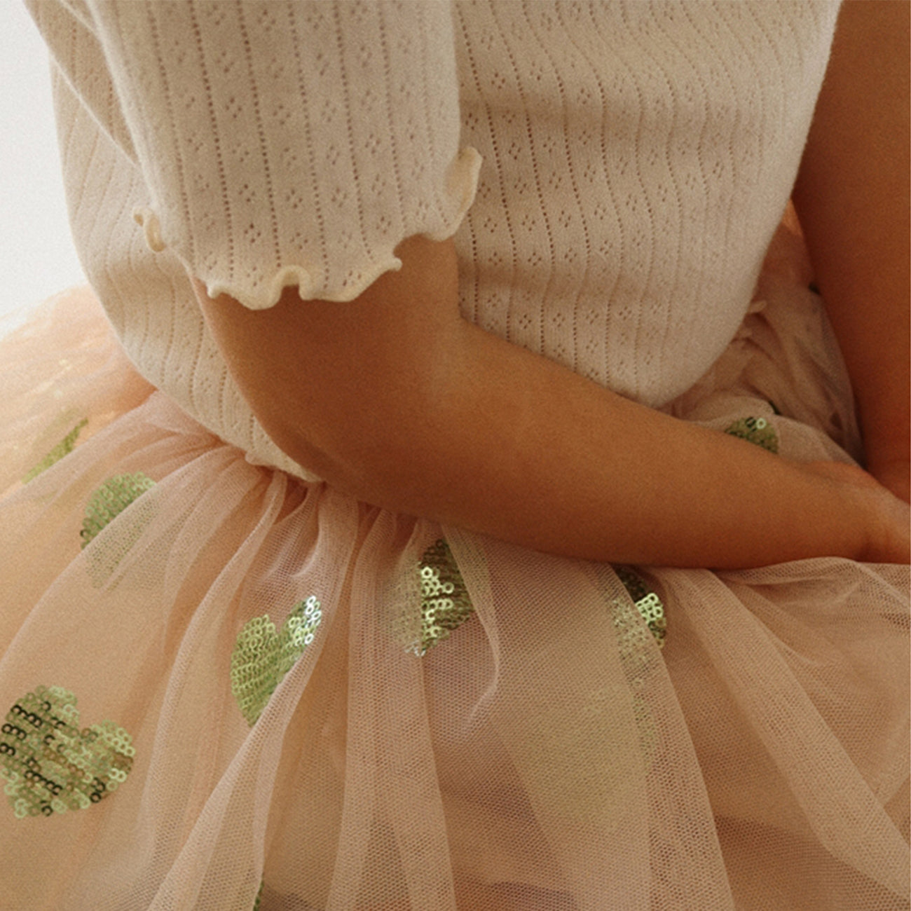 · Voluminous tulle skirt with a soft cotton lining and elastic waist.